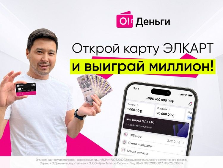 Эмиссия карт осуществляется на основании лицензии НБ КР №7003201022 от 20.10.2022 г. в рамках специального регулятивного режима. Разрешение СРНФР при МЭиК КР № 334 от 28 июля 2023 года Сервис «О!Деньги» предоставляется ОсОО «Грин Телеком Сервис». Лицензии НБ КР № 2021030817, № 3022030817 от 03.08.2017 г.