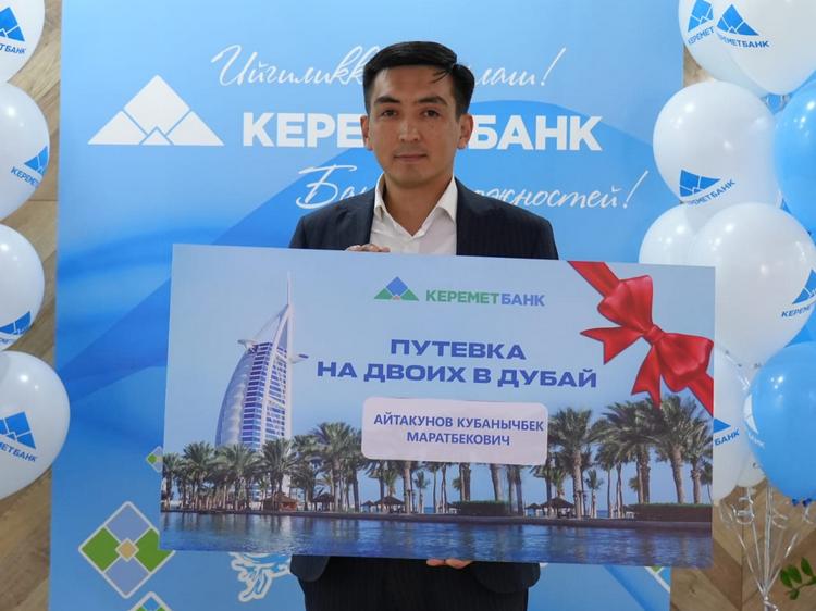 Кубанычбек Айтакунов получил от «Керемет Банка» сертификат на путешествие в Дубай (ОАЭ). Это стало наградой за приверженность применению платежной карты «Элкарт» от банка. Вручение главного подарка самому активному участнику акции «Кереметтүү эс ал — белектерди утуп ал» состоялось сегодня, 4 октября.