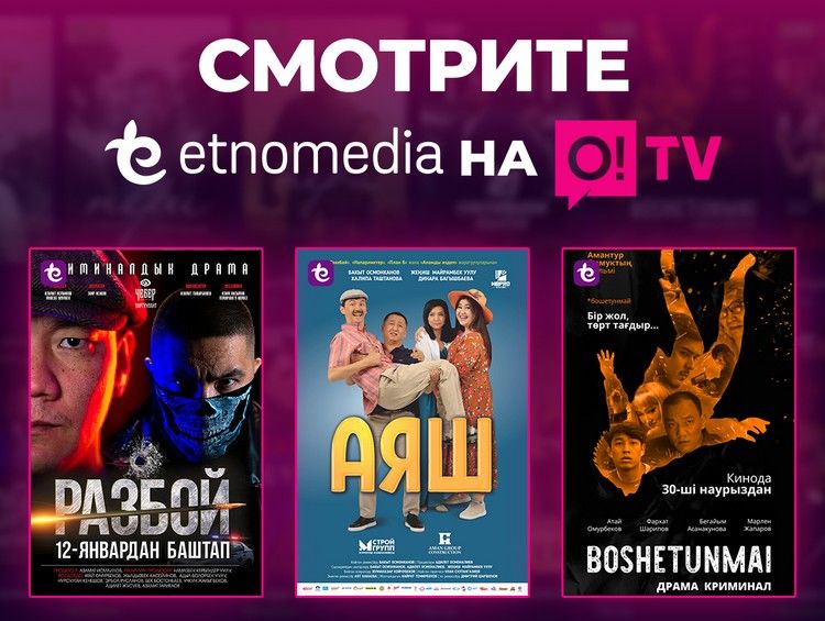 Откройте для себя самый крупный онлайн-кинотеатр кыргызских кинофильмов «ЭТНОМЕДИА» в приложении O!TV: