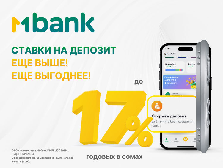 Напоминаем, что MBANK | ОАО «Коммерческий банк КЫРГЫЗСТАН» является участником системы защиты депозитов Кыргызской Республики. При наступлении гарантийного случая каждому вкладчику выплачивается компенсация до 1 миллиона сомов в совокупности, включая проценты по вкладам.