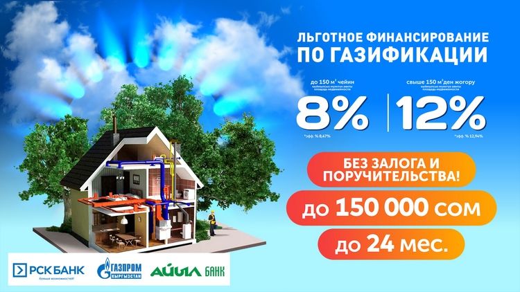 Льготные кредиты от 8 процентов для газификации дома от «РСК Банка» и «Айыл Банка» для жителей Бишкека и Чуйской области.