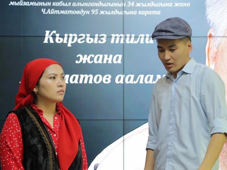 Биографический фильм о Чингизе Айтматове рассказал гостям о важных моментах жизни и творчестве этого выдающегося человека. Во время концерта был представлен отрывок из спектакля по мотивам произведения «Тополек мой в красной косынке». Прозвучали песни, написанные самим Айтматовым, — «Тоска по Иссык-Кулю», «Ильястын ыры».