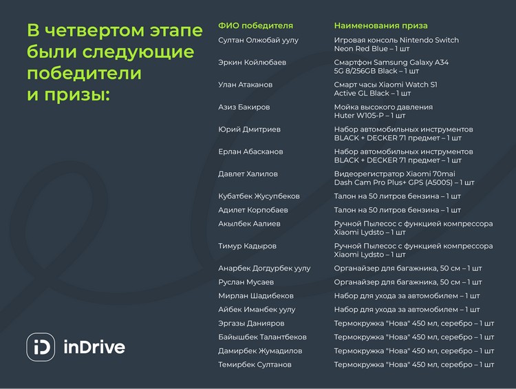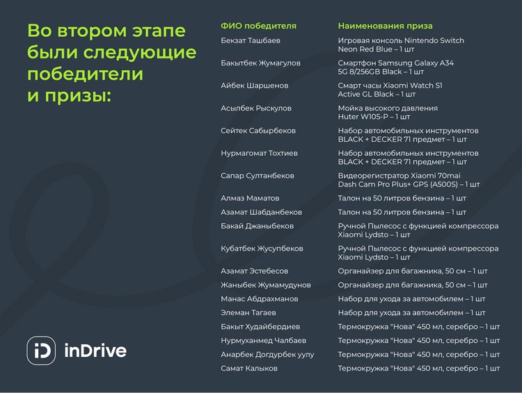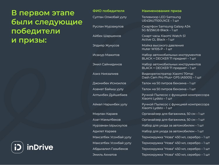 Агрегатор такси inDrive провел розыгрыш для водителей, участие приняли пользователи с водительским профилем в приложении inDrive.