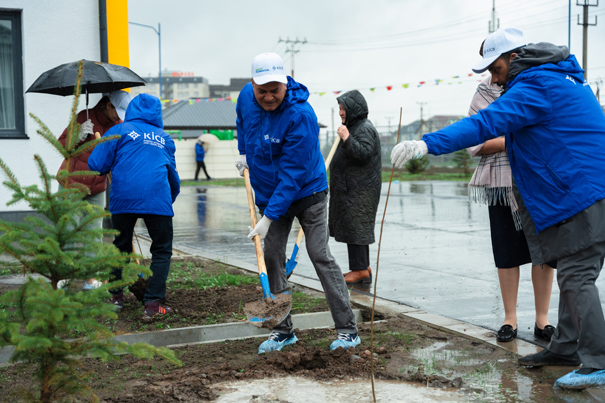 По уже сложившейся традиции большая делегация из сотрудников банка KICB, представителей МОФ «Инициативы Розы Отунбаевой» и Организации Ага Хана по развитию высадили деревья и кустарники в дошкольной образовательной организации № 25, которая находится в жилмассиве «Кок-Жар».