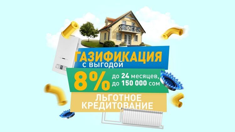 Жителям Бишкека и Чуйской области предоставляется уникальная возможность воспользоваться льготным кредитом для газификации своих домов. ОАО «Элдик Банк» (бывший «РСК Банк») и ОАО «Айыл Банк» предлагают финансирование под 8 процентов годовых. Соответствующее распоряжение принято кабинетом министров КР.
