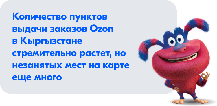 Сейчас в Кыргызстане стремительно растет количество пунктов выдачи заказов Ozon, но незанятых мест на карте еще много, так что у каждого есть возможность начать свое дело вместо с площадкой.