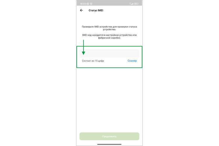 После того как мы узнали 15-значный IMEI-код, заходим в приложение «Мой О!» и нажимаем кнопку «Проверить IMEI телефона». Вводим IMEI-код в открывшемся окне или сканируем штрих-код сканером. Смотрим результат.