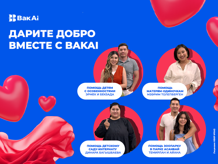 Действующие клиенты приложения BakAi могут абсолютно бесплатно поддержать выбранный проект в разделе акции «Дарите Добро». Каждый проект гарантированно получит от «Бакай Банка» 500 тысяч сомов, остальные средства банк перечислит с учетом набранных голосов в приложении BakAi. Голосовать можно ежедневно за одно благое дело, которое поддерживают бренд-амбассадоры «Бакай Банка»:
