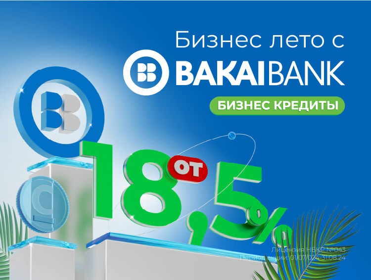 С 1 июля 2024 года «Бакай Банк» предлагает выгодные условия по кредитам на развитие малого бизнеса по акции «Бизнес-лето с «Бакай Банком».