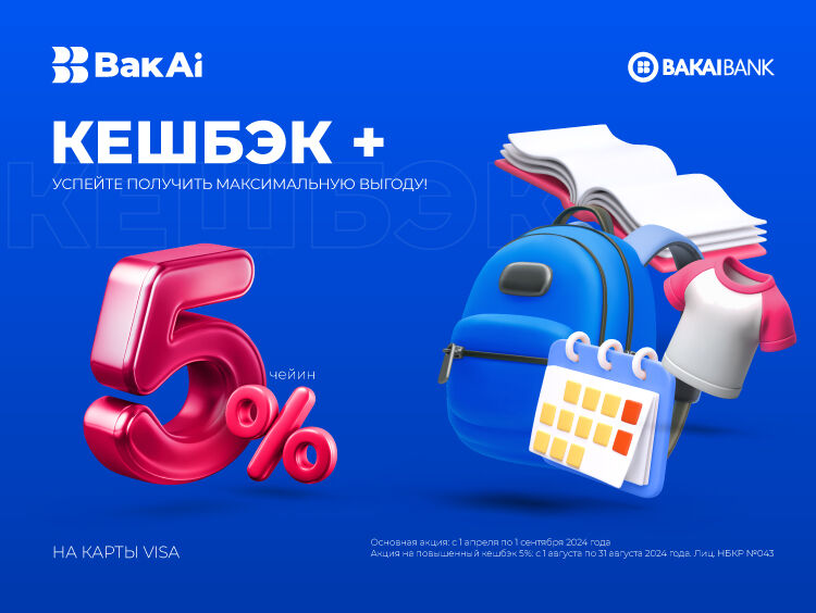 Кроме 5 процентов на указанные категории товаров, «Бакай Банк» предлагает 1 процент кешбэка на все остальные покупки при оплате картами Visa. Общая сумма кешбэка будет начислена в конце месяца.