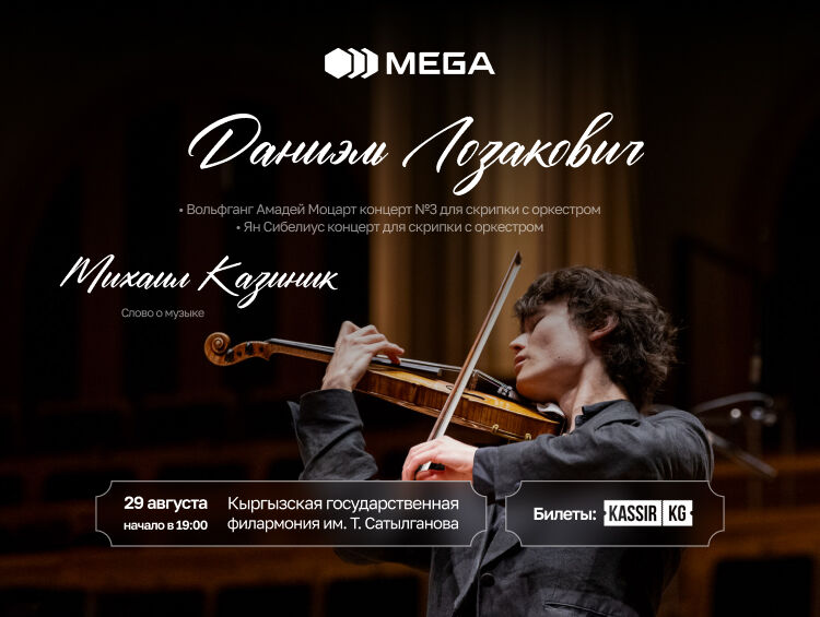 23-летний скрипач с кыргызскими корнями Даниэль Лозакович исполнит два произведения: Третий концерт Моцарта и грандиозный концерт Яна Сибелиуса. А также будет сопровождаться Михаилом Казиником, с которым он занимался в детстве.