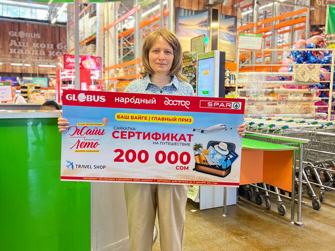Розыгрыш главного приза — сертификата на путешествие на сумму в 200 тысяч сомов от туристического агентства Travel Shop состоялся 2 сентября. Победителем стала Анастасия Семенцова.