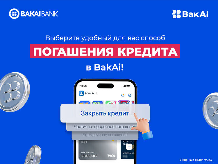 Теперь у вас еще больше возможностей для управления финансами! В приложении BakAi появилась новая функция, благодаря которой погашать кредиты стало проще, быстрее и удобнее. Независимо от того, где вы оформили кредит — онлайн или в отделении «Бакай Банка», вы сможете выбрать наиболее удобный способ для частичного или полного погашения прямо в мобильном банке BakAi.