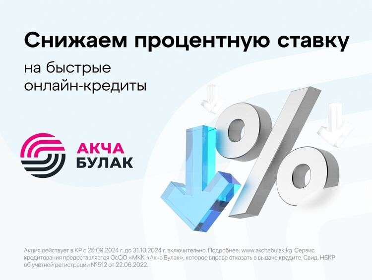 Микрокредитная компания «Акча Булак» объявляет акцию по снижению процентной ставки на быстрые онлайн-кредиты на сайте akchabulak.kg.