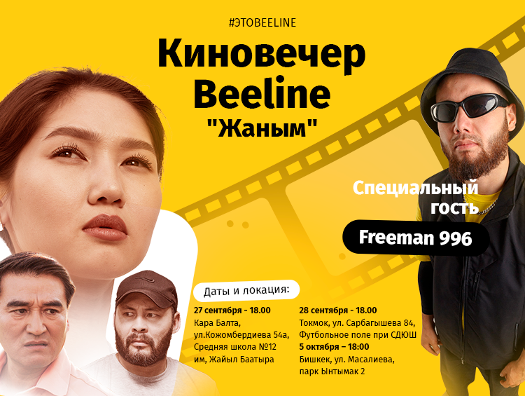 Впервые в Бишкеке и Чуйской области состоится уникальное событие — «Киновечер Beeline». Сотовый оператор приглашает всех желающих погрузиться в уютную атмосферу кино, музыки и приятных сюрпризов.