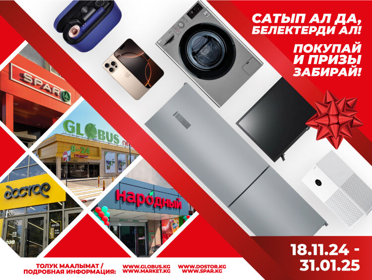 Магазины Globus, «Достор», «Народный» и SPAR уже давно стали излюбленным местом для покупок тысяч кыргызстанцев. Здесь всегда можно найти товары высокого качества по выгодным ценам. Новая акция «Покупай и призы забирай!» дает уникальную возможность выиграть множество призов, делая каждую покупку еще более приятной!