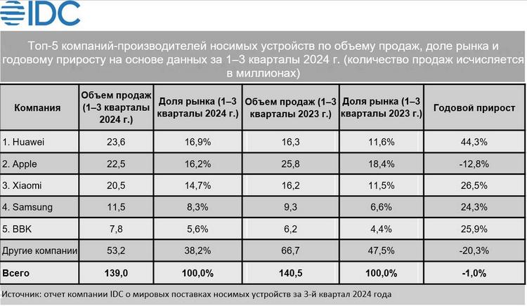 В отчете IDC также отмечается, что, несмотря на снижение количества поставок часов и браслетов в 2024-м, годовой рост темпа продаж китайских производителей составил 20,1 процента.