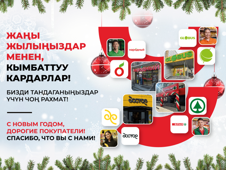 Дорогие кыргызстанцы! Крупнейший отечественный ритейлер — компания «Умай Групп» поздравляет вас с наступающим, 2025 годом! Мы с теплотой и благодарностью оглядываемся на пройденный путь и хотим поблагодарить вас — наших покупателей за ваш выбор и доверие. Именно вы вдохновляете нас становиться лучше, помогаете нам расти и развиваться.