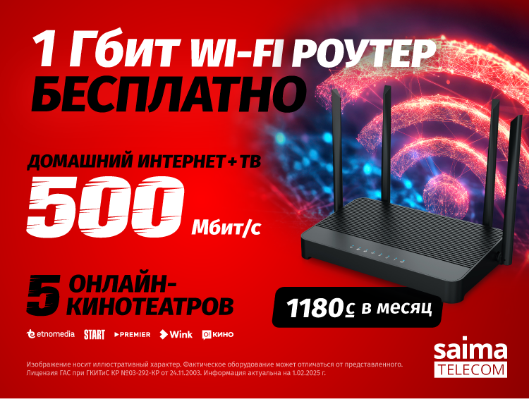 И самое приятное — гигабитные роутеры от Saima предоставляются бесплатно при подключении к тарифам «Премиум 500 + O!TV» и «Премиум 500 +».