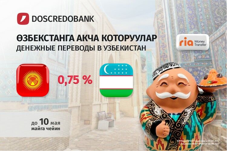Отправлять деньги из Кыргызстана в Узбекистан стало еще выгоднее! Комиссия на переводы через Ria Money Transfer снижена до 0,75 процента от суммы перевода.