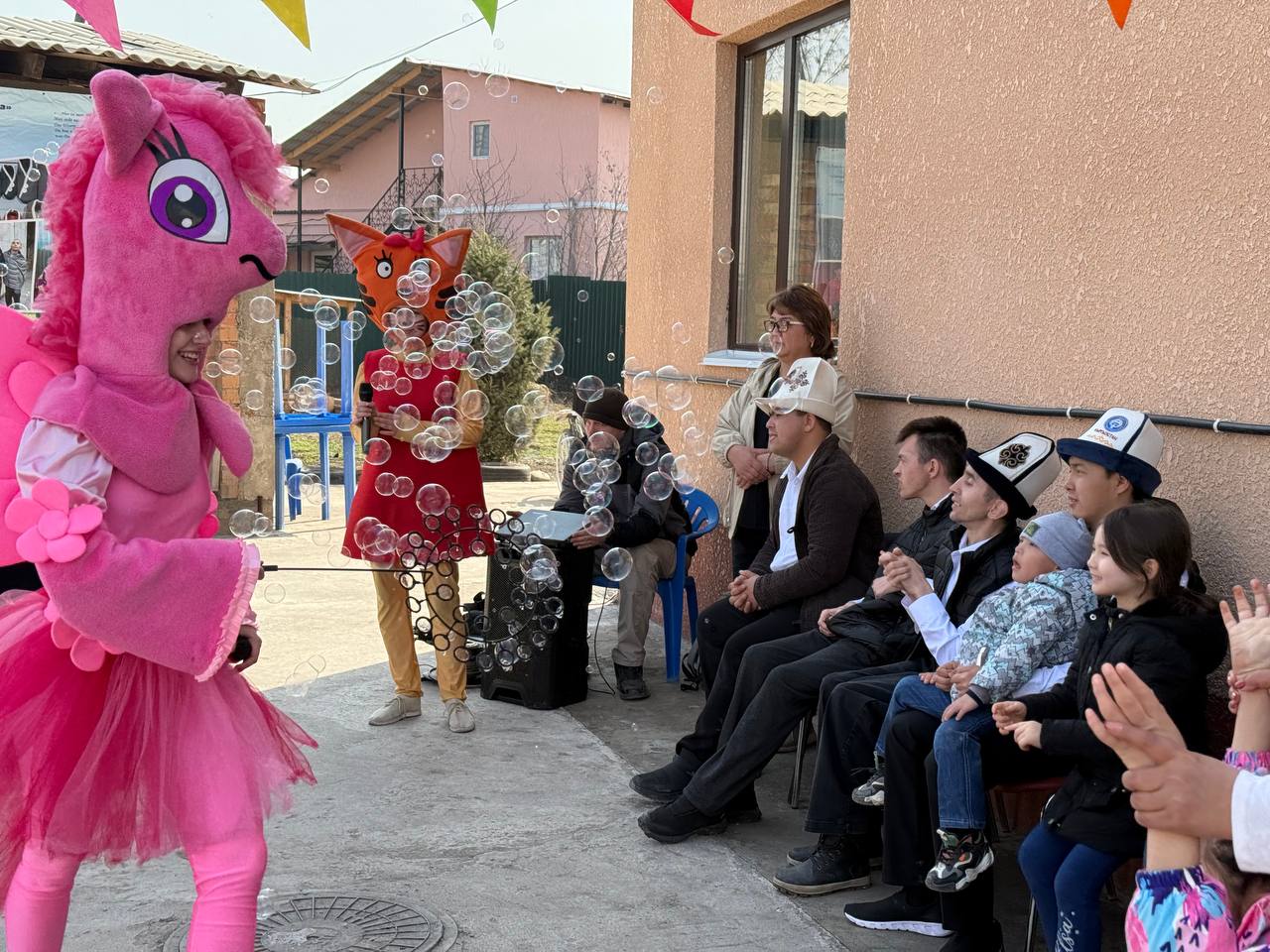 Оркестр «Саратан» исполнил две замечательные песни, а мальчики-воспитанники показали свои таланты в танце. После официальной части к детям вышли аниматоры, которые развлекали их песнями и шоу с мыльными пузырями.