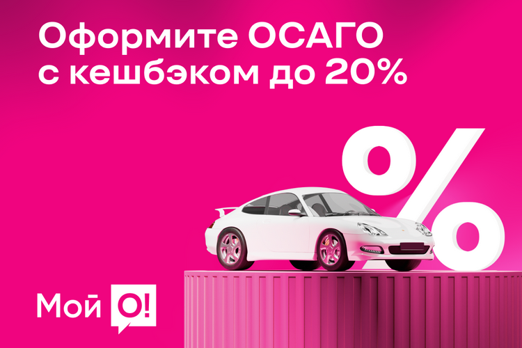 Выгодное предложение для автомобилистов! Теперь вы можете оформить ОСАГО онлайн — быстро, удобно и в любое время в супераппе «Мой О!» и получить кешбэк до 20 процентов. Это не только выполнение требования закона, но и возможность покрыть расходы в случае ДТП.
