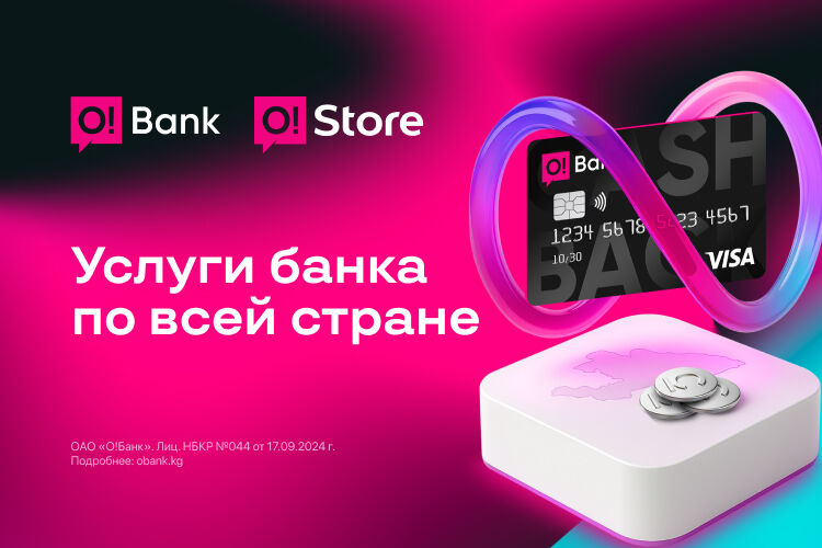 ОАО «О!Банк». Лицензия НБ КР № 044 от 17.09.2024. ОсОО «Грин Телеком Сервис». Лицензии НБ КР № 2021030817 и № 3022030817 от 03.08.2017, являясь агентом ОАО «О!Банк», принимает заявки в O!Store.