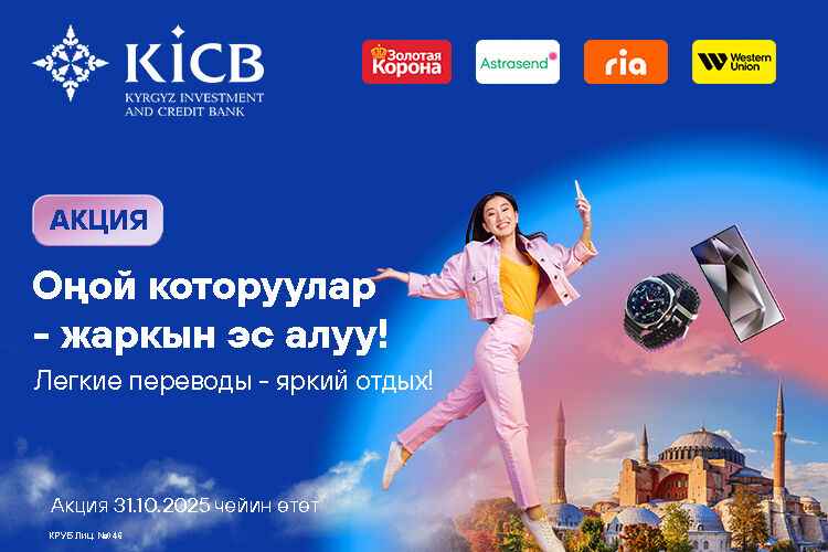 Для участия в акции получите или отправьте минимум три денежных перевода в месяц в KICB с 1 августа по 31 октября 2025 года через системы переводов и становитесь участником акции «Легкие переводы — яркий отдых!»: