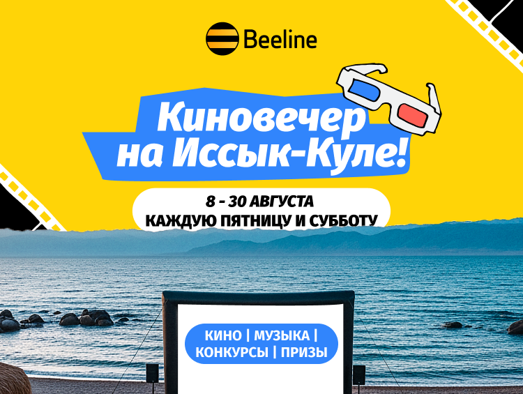 Идеальный летний вечер — это мягкий песок под ногами, шум волн совсем рядом и... хороший фильм на экране под открытым небом. До конца августа сотовый оператор Beeline Кыргызстан проводит бесплатные кинопоказы прямо на пляжах Иссык-Куля. Если планируете провести выходные на северном берегу озера, присоединяйтесь!