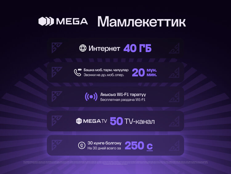 Главное преимущество тарифа — доступная стоимость. Всего за 250 сомов на 30 дней пользователи получают: