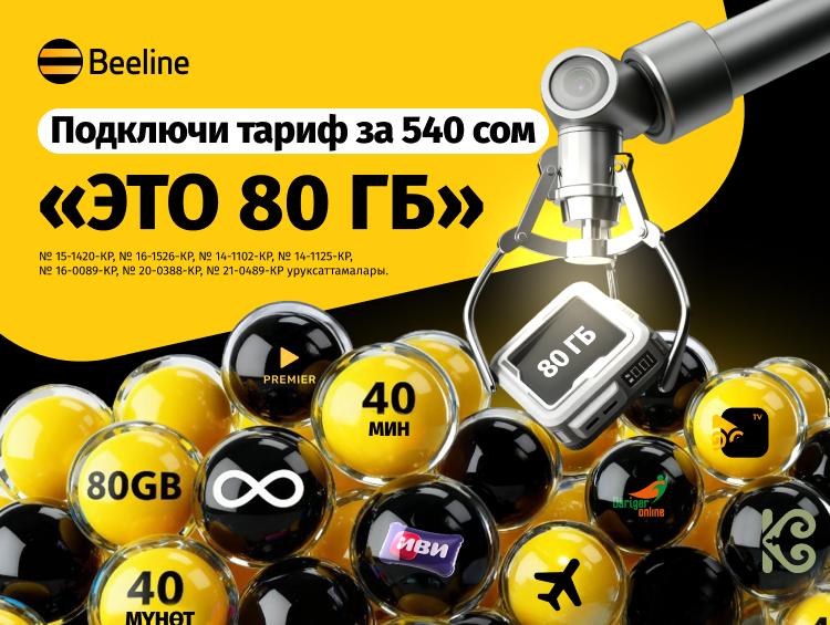 Сотовый оператор Beeline Кыргызстан представляет новый тариф «Это 80 GB». В нем есть все, что нужно активному пользователю: большой интернет-пакет, свобода общения и бесплатные бонусы для связи и развлечений.