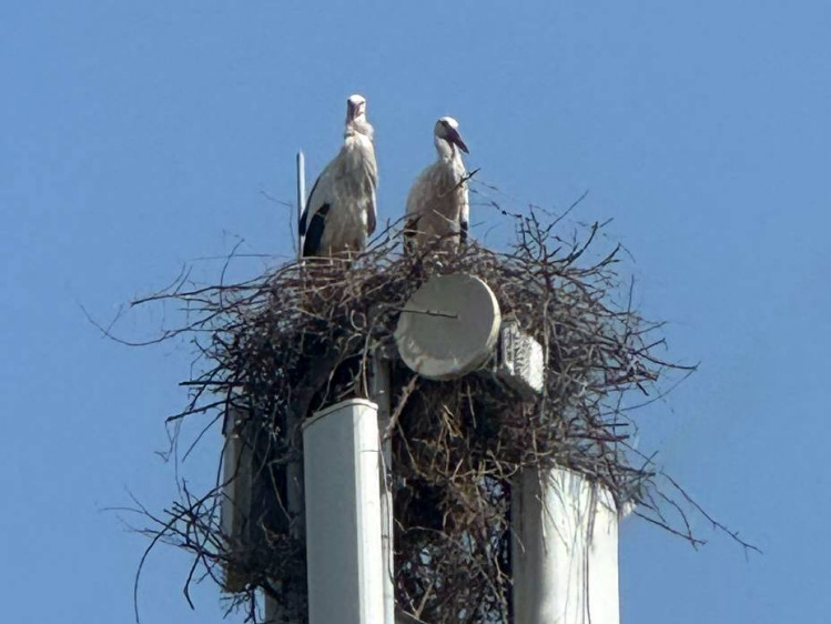 Местные жители подтвердили: птицы борются за лучшие места для гнездования, и вот уже второй год подряд эта сотовая вышка становится их домом. Здесь они проводят два-три месяца, высиживают яйца, кормят и взращивают птенцов, ставят на крыло. И так уже не один год.