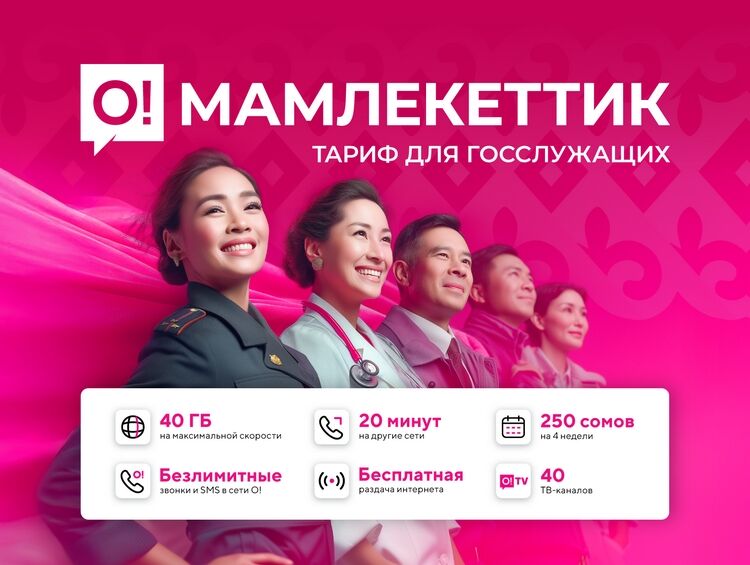 Мобильный оператор О! продолжает заботиться о тех, кто служит стране, и напоминает о специальном тарифе «О!Мамлекеттик» для государственных и бюджетных служащих.