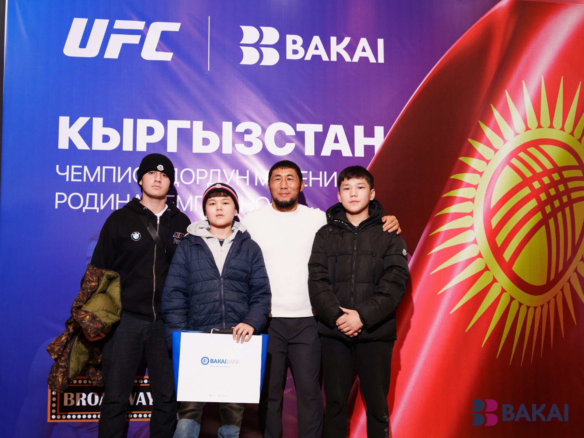 Премьера документального фильма «Кыргызстан — родина чемпионов» состоялась в Бишкеке. Картина о пути спортсменов республики к чемпионскому титулу и мировому признанию снята при активной поддержке BAKAI по инициативе UFC Eurasia. Лента посвящена развитию культуры единоборств в стране и особому интересу нового поколения к разного вида борьбе.