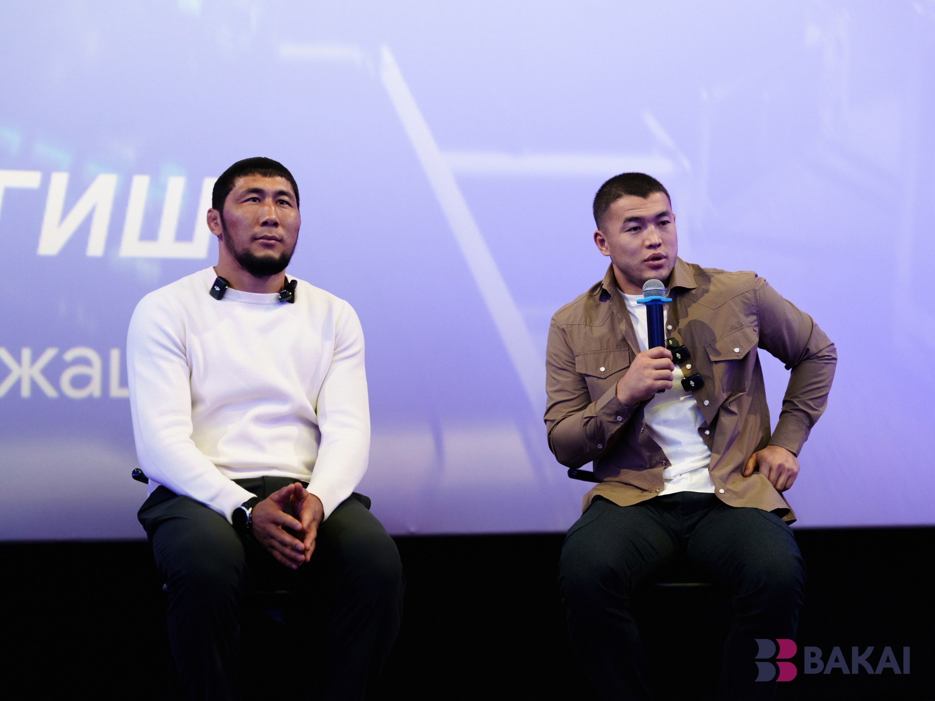 Гости презентации — именитые отечественные борцы Акжол Махмудов и Мыктыбек Оролбай уулу — рассказали зрителям о спортивных достижениях и особом отношении к тренировкам. Они с удовольствием ответили на вопросы своих многочисленных поклонников и сделали селфи на память.