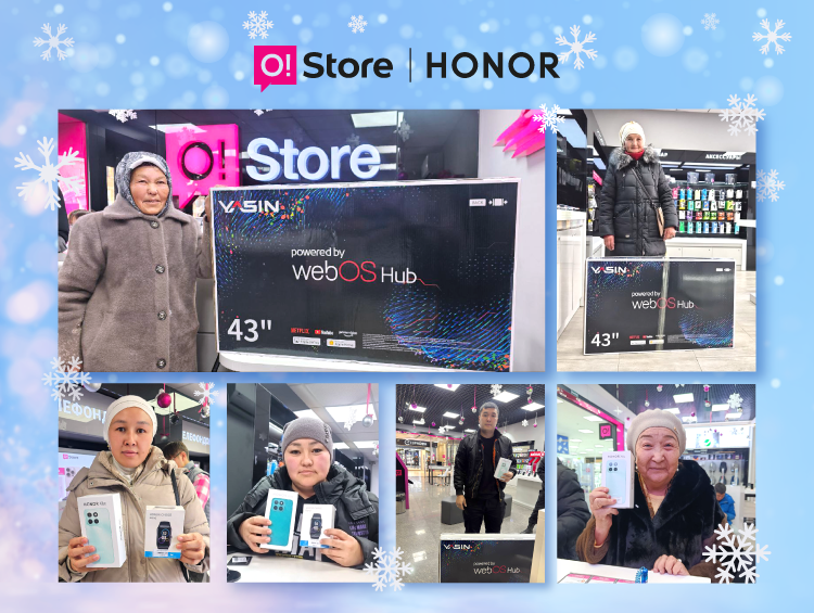 Новогодние сюрпризы в O!Store на этом не заканчиваются. Прямо сейчас продолжается масштабная акция для всех, кто планирует обновить смартфон. При покупке устройства Honor каждый покупатель гарантированно получает подарок. Любой смартфон можно приобрести в рассрочку от 1 тысячи 67 сомов в месяц. Заказывайте их онлайн в приложении «Мой О!» с бесплатной доставкой по Бишкеку: https://market.o.kg/ru/blocks/7386