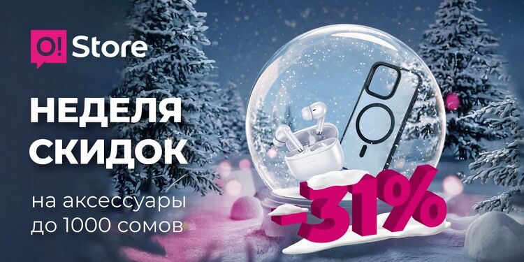 В преддверии Нового года сеть магазинов O!Store запускает праздничную неделю скидок по всему Кыргызстану. С 24 по 31 декабря любой аксессуар стоимостью до 1 тысячи сомов можно приобрести со скидкой 31 процент. Это отличный шанс добавить к подарку стильную деталь, обновить полезные мелочи или порадовать себя перед самым волшебным праздником года.