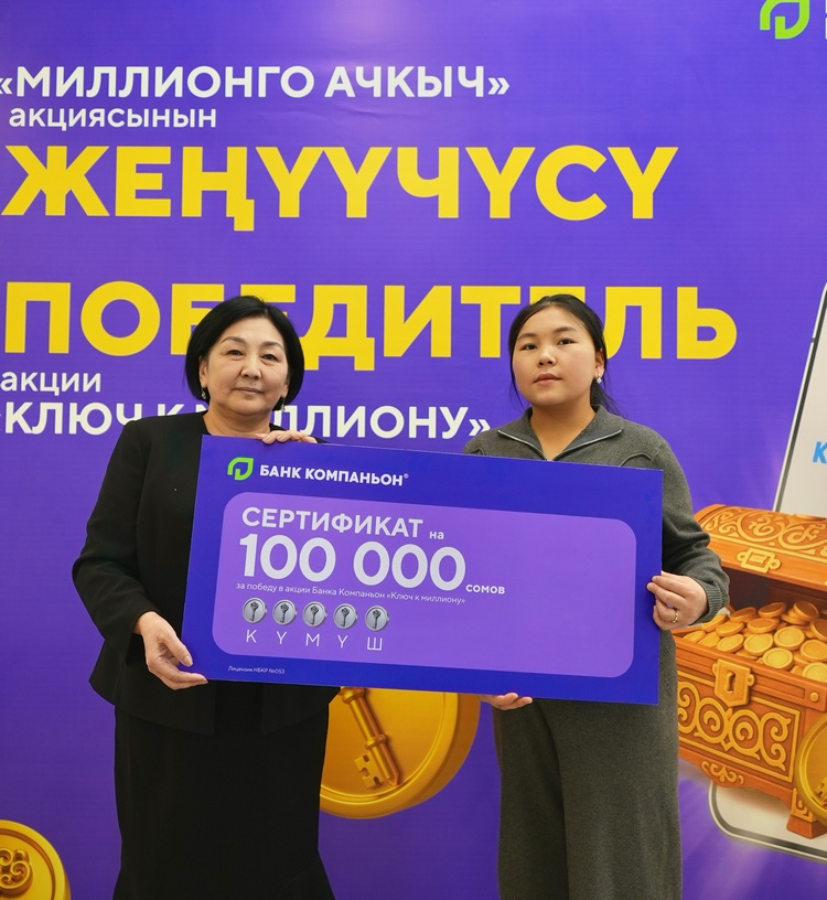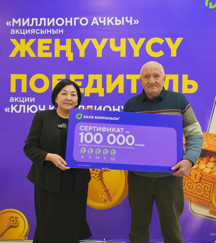 Главный приз акции — 1 миллион сомов — получили сразу два клиента «Банка Компаньон». Золотые сундуки открыли Акылбек уулу Эржан и Музафар Мурзакулов.