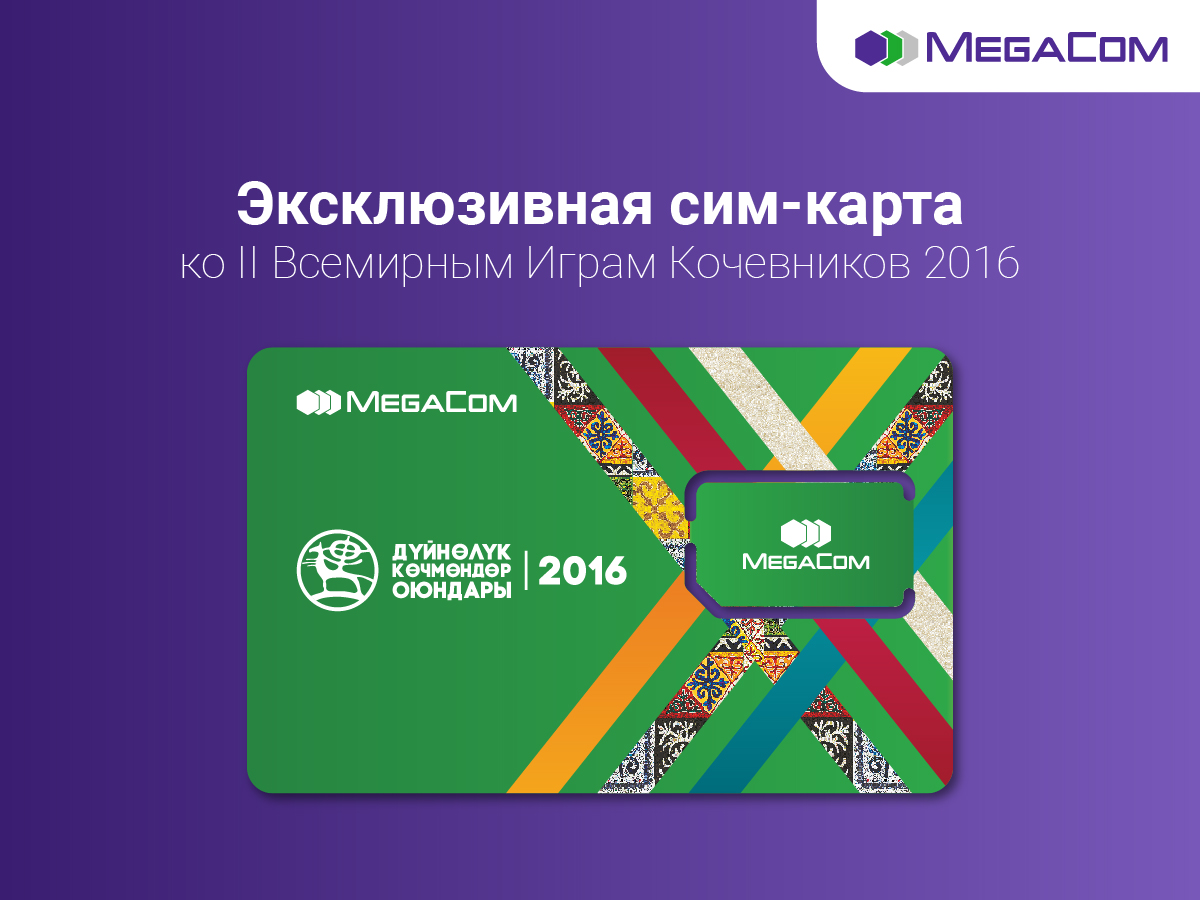 Специально ко II Всемирным играм кочевников MegaCom выпустил брендированные SIM-карты, оформленные в колоритном национальном стиле. Они станут замечательным подарком для ценителей этно-мотивов и культуры кочевников. Спешите приобрести эксклюзивные SIM-карты, выпущенные в ограниченном количестве. Вместе с эксклюзивной SIM-картой вы получите выгодные звонки внутри сети и на популярные международные направления, которые обеспечит специальная опция Nomad.