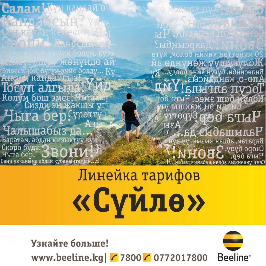 «Создавая тарифы «Сүйлө», мы ориентировались на потребности клиентов, которые не привыкли ограничивать себя в общении. Благодаря новому тарифу наши абоненты смогут не только общаться без ограничений в сети Beeline Кыргызстан, но и оставаться на связи с близкими за границей», – комментирует коммерческий директор Beeline Тилек Ахматов.