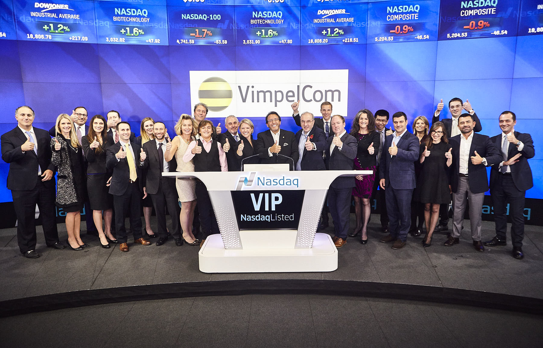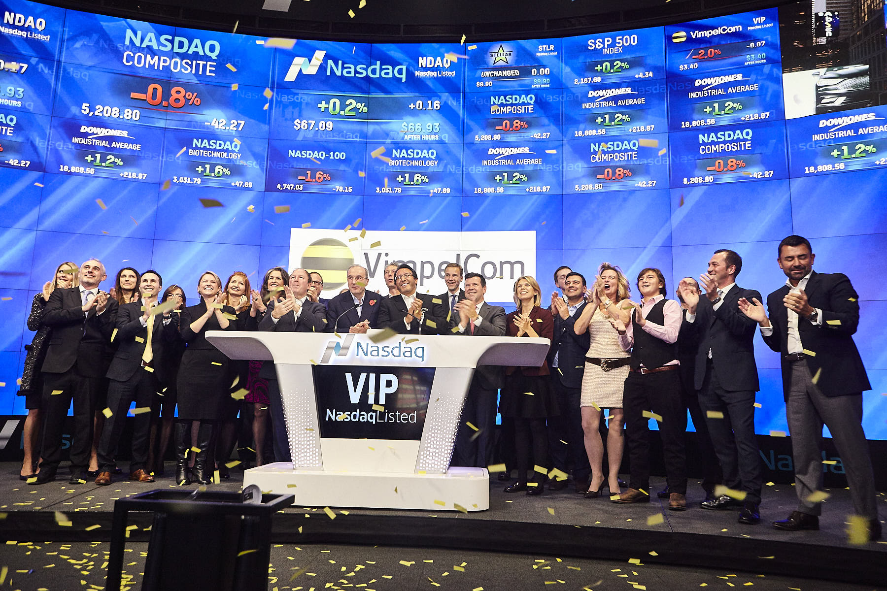 10 ноября «ВымпелКом» традиционным ударом в колокол закрыл торговый день на бирже НАСДАК (NASDAQ), отметив, таким образом, 20 лет с момента первых торгов на площадке в Соединенных Штатах.