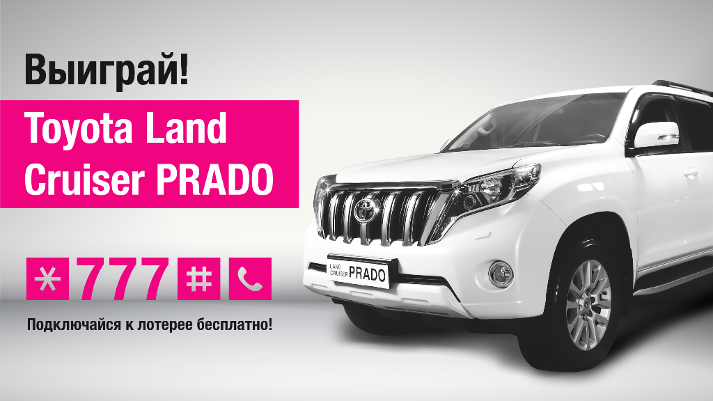 Мобильный оператор О! объявляет о проведении широкомасштабной лотереи «Удача». С сегодняшнего дня любому абоненту О! предоставляется шанс выиграть ежемесячные призы и главный супер-приз – новый автомобиль TOYOTA Land Cruiser Prado. В призовой фонд также входят 75 смартфонов Huawei Y3II и 90 4G wi-fi Wingle. Участие абсолютно бесплатное.