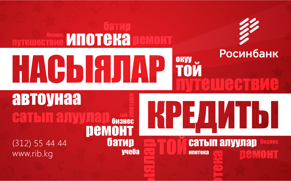 Получить кредиты в кратчайшие сроки и максимально быстро можно во всех филиалах ОАО «Росинбанк». За более подробной информацией обращайтесь по телефону +996 312 55 44 44.