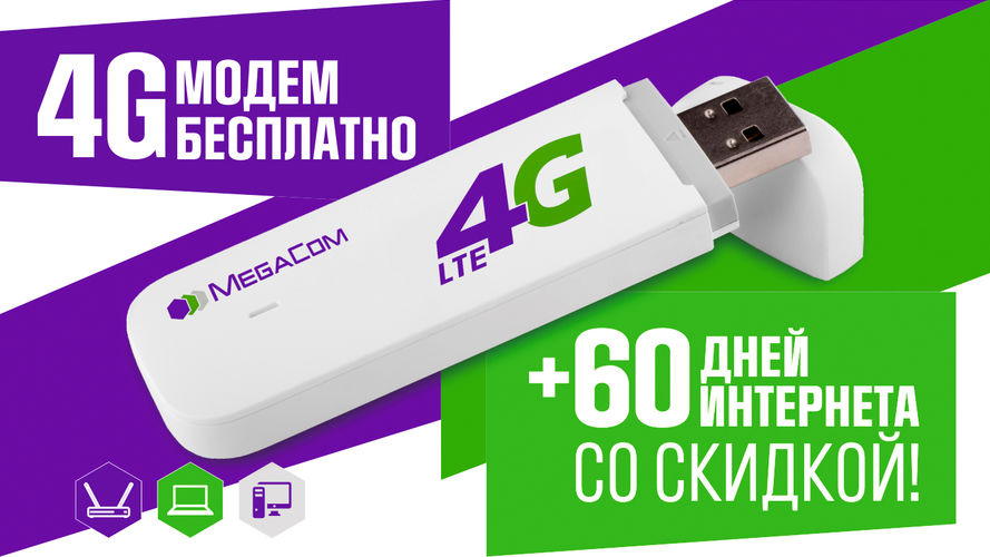 Наслаждайтесь высокоскоростной технологией 4G LTE от MegaCom с тарифным планом »Безлимитный 4G». Публикуйте посты и фотографии в социальных сетях, играйте в популярные игры, загружайте нужные приложения, скачивайте любимые песни, смотрите новинки кино в высоком качестве — все это с помощью современного модема 4G USB. Пользоваться услугами Всемирной сети можно в любом месте — дома, на работе, на отдыхе. Все представленные