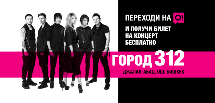 Для абонентов мобильного оператора О! любимая всеми группа «Город 312» исполнит свои лучшие песни. Первый концерт состоится 26 апреля на стадионе «Курманбек» города Джалал-Абада, затем выступление пройдет 28 апреля на центральном стадионе в Оше. Кроме «живого» выступления группы «Город 312» зрителей ждут интересные конкурсы и сюрпризы от молодежного проекта No Name, а также выступления популярных звезд отечественной эстрады — Гулнур Сатылгановой и Мирбека Атабекова.