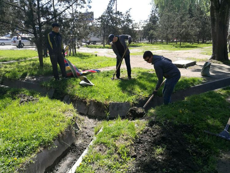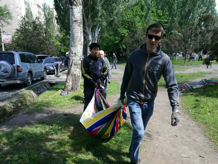 В Бишкеке ООО «Скай Мобайл» субботник приурочило ко Дню города. 150 сотрудников мобильного оператора, включая топ-менеджеров, вышли очистить от мусора выделенную администрацией Свердловского района территорию.