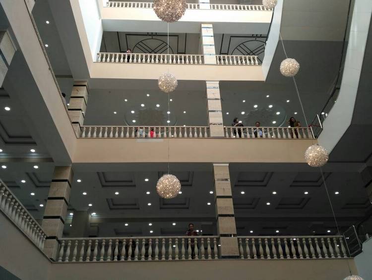 Фактически семиэтажное здание площадью 60 тысяч квадратных метров, кроме торговых бутиков, вмещает в себя целый комплекс развлекательного направления с современным кинотеатром, кофейнями, детской площадкой.
