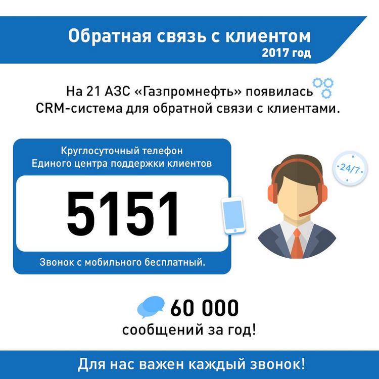 Для сотрудников Единого центра поддержки клиентов компании «Газпром нефть Азия» это не просто красивая фраза, а лозунг каждого дня. За год ими было обработано свыше 60 тысяч обращений, и каждое из них детально изучено. Номер Единого центра поддержки 5151 работает круглосуточно, позволяя оперативно получить ответ на любой вопрос о работе АЗС, причем звонок с мобильного бесплатный.