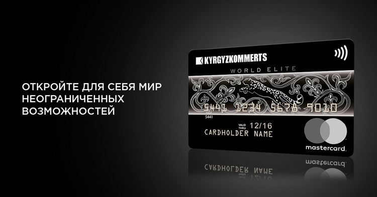 Kyrgyzkommertsbank − первый банк в Кыргызстане, предложивший своим клиентам карту World Elite Mastercard − поистине элитарный продукт, наилучшим образом учитывающий индивидуальные потребности состоятельных людей и обеспечивающий своему обладателю доступ к сервису высочайшего класса Elite не только в Кыргызстане, но и за границей.