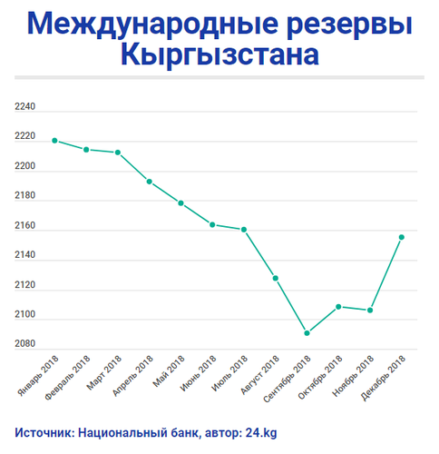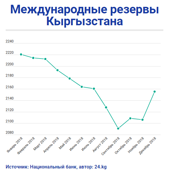 По итогам декабря 2018 года валовые международные резервы Кыргызстана выросли, несмотря на валютные интервенции Национального банка. Об этом сообщил сайт НБ КР.